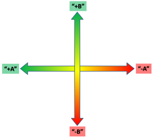 Wiskundig kun je allerlei multi-hoekfiguren tekenen en daarna proberen betekenis te geven aan elk punt. Zeer interessant om te lezen en erover na te denken, maar over het algemeen kunnen onze hersenen moeilijk pragmatisch met dergelijke constructies omgaan. Het enige model dat algemeen wordt gebruikt en intuïtief wordt begrepen, is het kwadrant. In feite is het kwadrant een dubbele, wederzijds exclusieve binaire keuze. Consultants zijn dol op dit model, omdat het hen in staat stelt onderwerpen te combineren die geen duidelijke relatie met elkaar hebben. Elk kwadrant vormt dan een nieuwe entiteit in onze wereld, zoals mannen en vrouwen versus fiets en auto. Automatisch sluiten we de groep mensen uit die geen van beide hebben (!) en we creëren 4 nieuwe interessegroepen: fiets-mannen, fiets-vrouwen, auto-mannen, en auto-vrouwen. Het model wordt op vele manieren gebruikt en gepresenteerd. Google maar eens een beetje op “kwadrant”, en je zult veel voorbeelden vinden. Een goede uitvoering is het analysemodel van Daniel Ofman, waarin menselijke kernkwaliteiten worden uitgelegd. Het model is een prima manier om na te denken over ons eigen, door hersenen gecontroleerd gedrag. Bekijk ter introductie deze video: