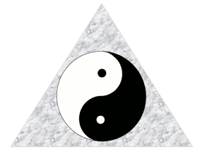 Waar dualisme twee elementen nodig heeft, is er impliciet een derde element: de combinatie daarvan. Het meest bekende model dat dit vertegenwoordigt, is de driehoek of piramide. Twee elementen aan de basis en één combinerend element aan de bovenkant. Dit model is heel gemakkelijk voor de hersenen om mee om te gaan: het geeft hiërarchie (niveaus) en structuur in een complexe wereld van binaire keuzes. Piramides zelf zijn weer onderdelen van grotere constructies, maar je hoeft daar niet naar te kijken als je tevreden bent met de reikwijdte van je eigen piramide. Zie eens hoe onze wereld zich opbouwt uit steden, provincies, landen en continenten. Hoe er binnen de steden weer verenigingen, sportclubs, vakbonden, favoriete horecagelegenheden, gezinnen enzovoort zijn. We werken voor een werkgever, binnen een afdeling en een team… En alle afzonderlijke elementen hebben enig leiderschap. Zelfs in religies zie je dat de driehoek heel vaak terugkomt om eenheid te tonen, maar met verschillende niveaus tussen top en basis. De piramide is een zeer stabiele constructie en onderhoud vereist weinig energie.